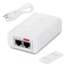 Inyector de energía PoE que proporciona alimentación a través de Ethernet utilizando el estándar 802.3af. Está diseñado para alimentar dispositivos como los puntos de acceso Ubiquiti UniFi 6 Lite y UniFi 6+.