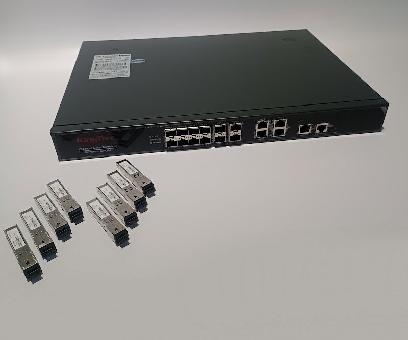Equipo de terminación de línea óptica (OLT) con tecnología GPON de alta densidad, diseñado para proveedores de servicios de internet (ISP). Cuenta con 8 puertos GPON para conexión de ONUs, 4 puertos de enlace ascendente (Uplink) SFP+ de 10 Gbps para alta capacidad de datos y 4 puertos adicionales Gigabit. Es una solución compacta y eficiente para despliegues de fibra óptica al hogar (FTTH), ofreciendo estabilidad y gestión avanzada de tráfico en redes de banda ancha.